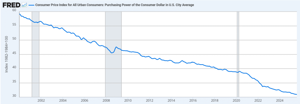 Poder de compra del dólar americano desde el 2000: